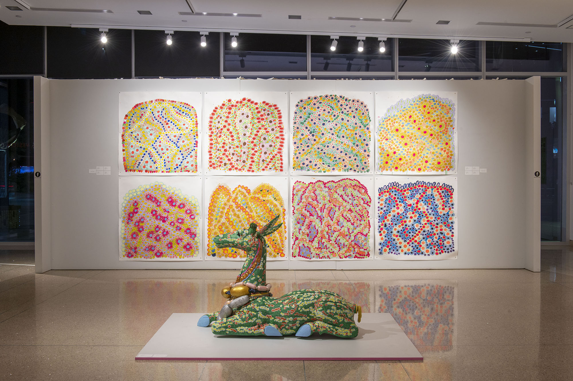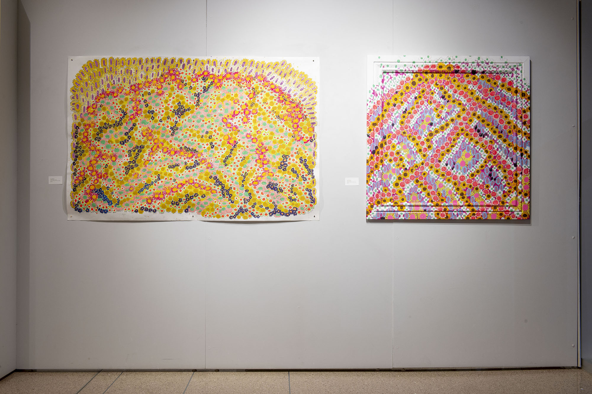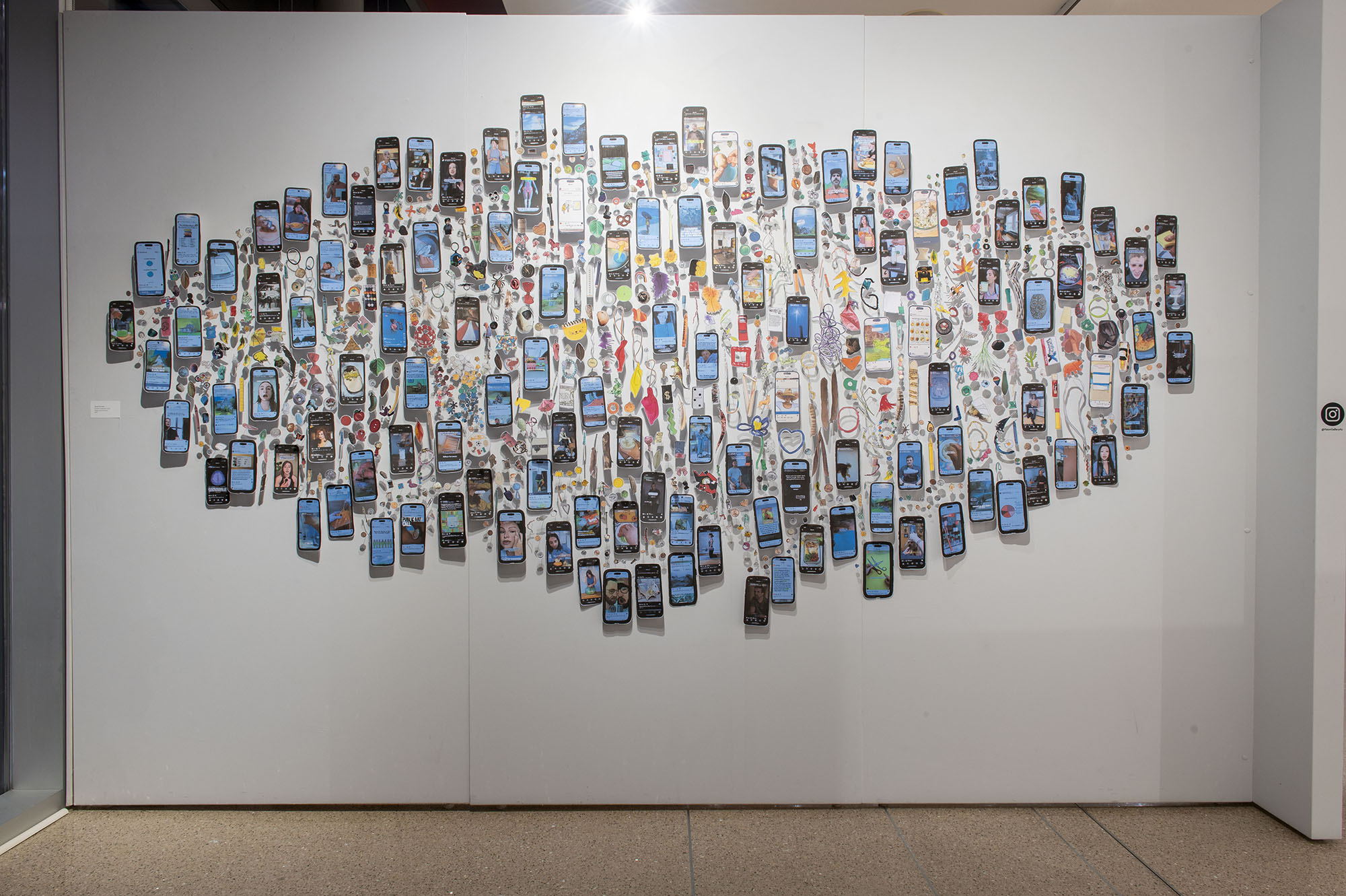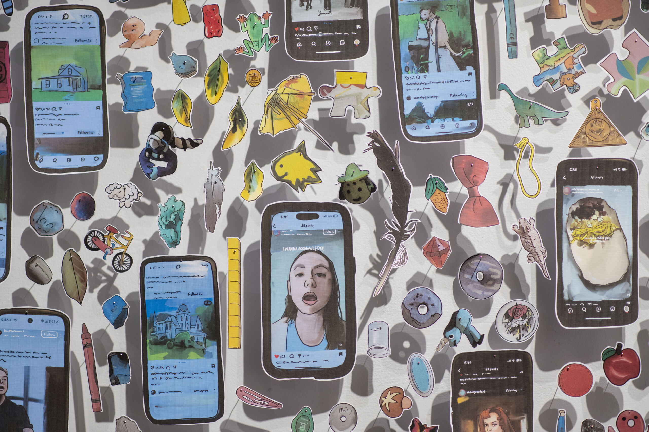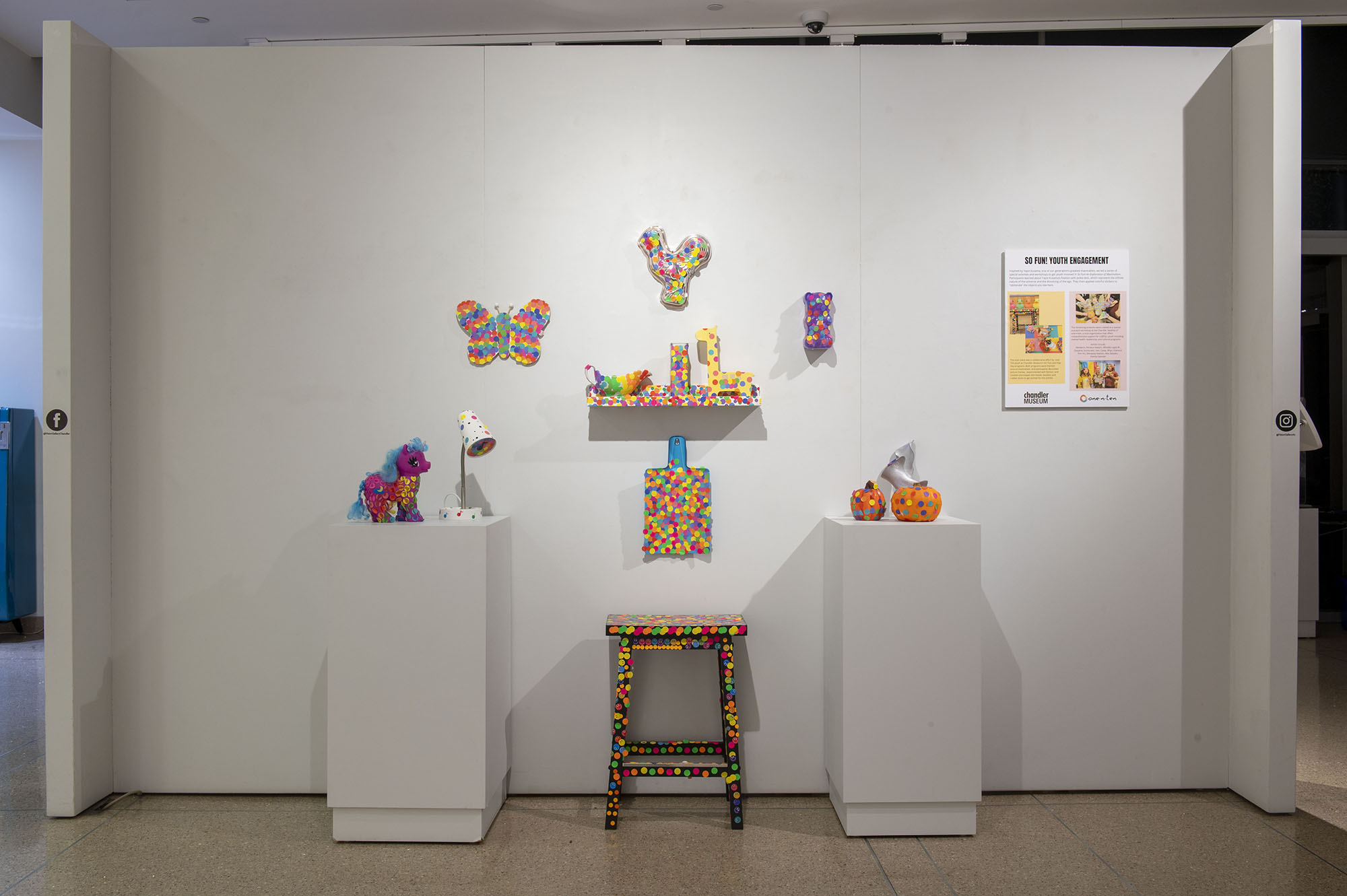 Born out of a rebellion against the Minimalist art movement, contemporary Maximalism counters the prejudice of high culture. From Yayoi Kusama’s polka dots to Kehinde Wiley’s portraits, this complex mode of creation has been used by artists and creatives over the decades to express themselves and transform the historical understanding of maximalist craft. The artists in this exhibition create transformative environments, explore femininity and queerness, celebrate the impact of internet culture, breathe new life into second-hand objects, and recontextualize the legacy of maximalism. Behind the tacky smiley faces, flashy flowers, and bright colors, in this exhibition there are deeply personal, social, and cultural topics being explored that challenge the perception of this playful aesthetic. Through the use of color, pattern, and repetition, “So Fun!” creates an environment rich in storytelling, self-expression, and empowerment that embodies the joyful spirit of the aesthetic of excess.