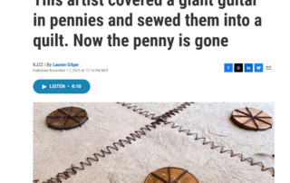 This artist covered a giant guitar in pennies and sewed them into a quilt. Now the penny is gone